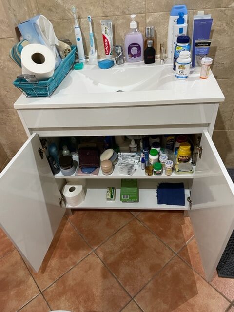 Bathroom: We need to find at least one big storage hutch for the bathroom, it is an organized disaster right now. We brought a lot of products: toiletries, first aid, vitamins, prescriptions etc. – and not much stands out as being wasted space (even if you don’t use a bandaid it’s nice to have some available).
