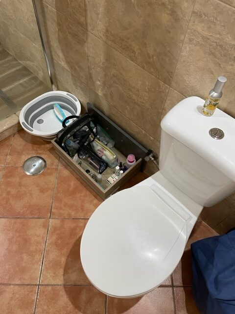 - The drawer near the toilet is the one that won’t fit on Michelle’s side of the bed, it currently serves as a mini hutch until we find a suitable replacement.