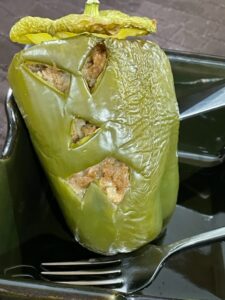 Jack -O’-Lantern Stuffed Peppers: This was a new recipe for us, it tasted great and made me smile each time I saw my horribly carved peppers (waaay less gross then doing pumpkins). I’d definitely recommend this one if you want something simple, seasonal, and not too sweet for a holiday meal.