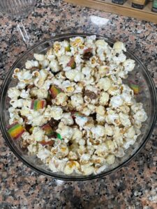 Halloween Popcorn: This has been a favorite of ours for years. Chop up your favorite candies (we used Snickers, Twix, Peanut M&M’s, and some sour ropes), make popcorn and a simple caramel and mix it all together. One thing we didn’t bring was our air popper so we have been using a pan on the stove and some coconut oil which works great.