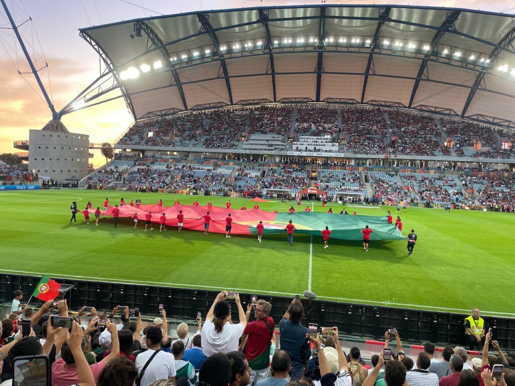 People’s connection to futebol is a complicated one (there are some interesting documentaries about FIFA, UEFA, and various teams on Netflix and Apple TV), encompassing feelings about relegations, political gripes, or even the overwhelming pride residents have in the star players who grew up in their towns. Shout out to Gonçalo Ramos, born in Olhão, who we got to see during this game. For now, let’s just say that Michelle and I watch a game or two of futebol almost every week and last September we went to our first (MAJOR) live match.