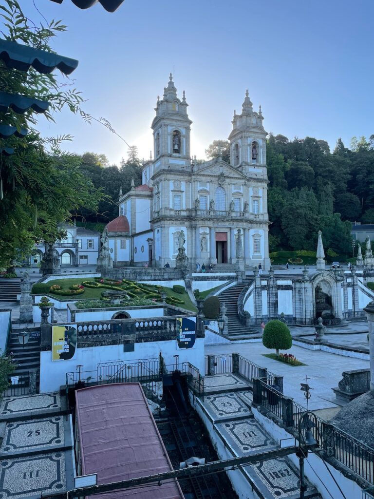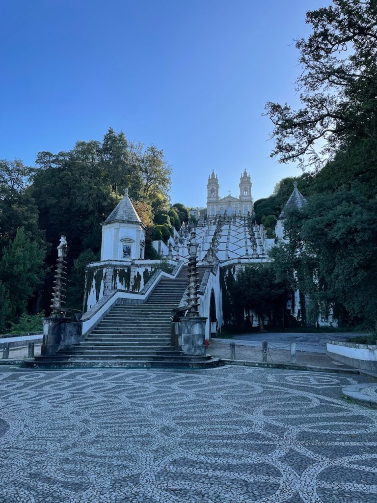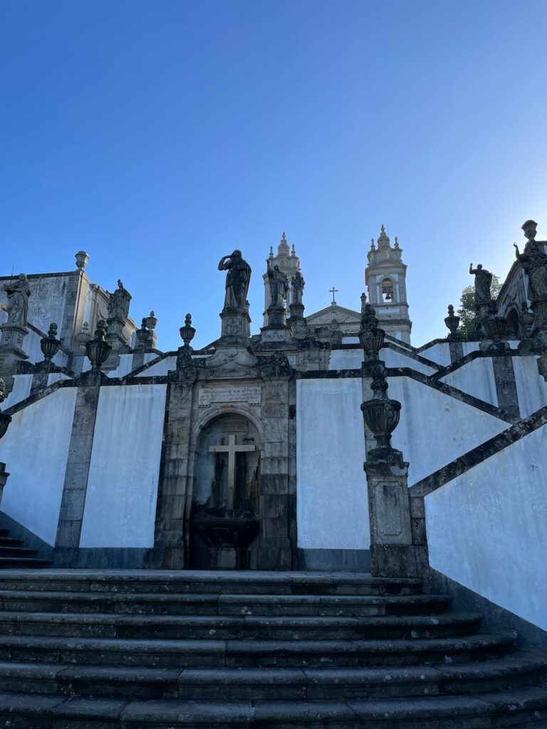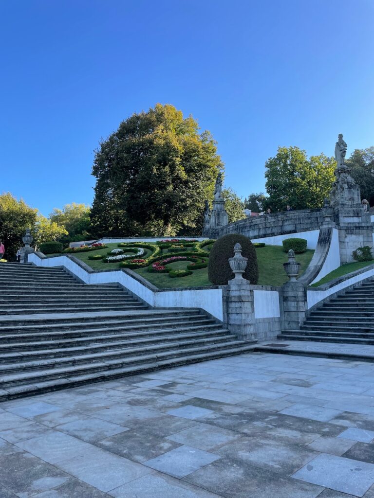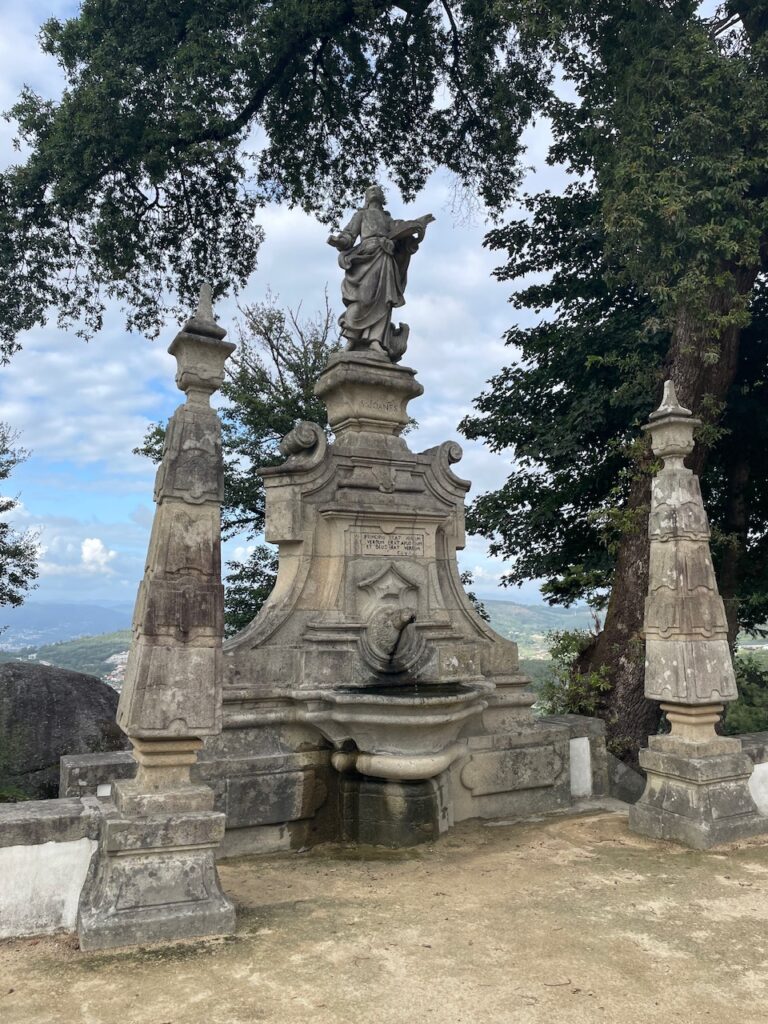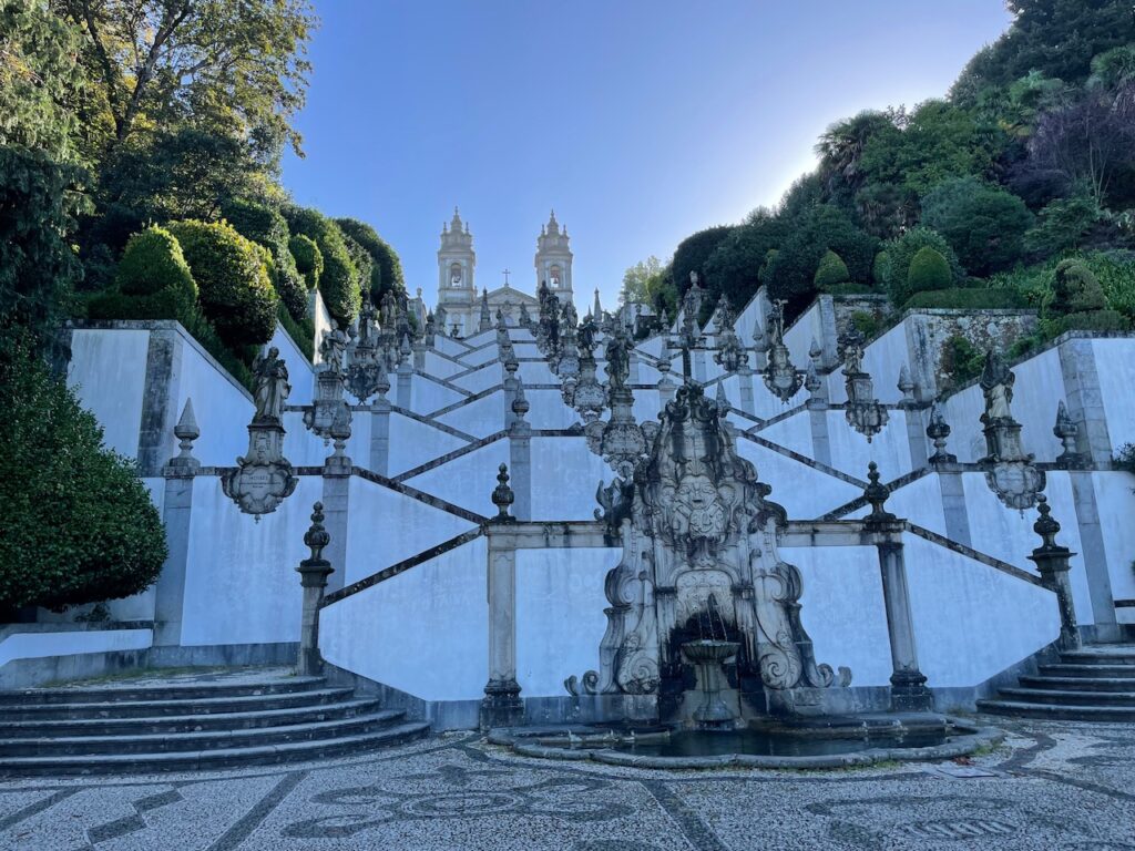 Cousin Susie had this sanctuary on her “must-see” list and we wanted to visit different regions, specifically the north of Portugal, to scout locations for a future relocation. Could we really trade 300 days of sun and bright blue skies in the Algarve for a rainier, cooler climate in the north? We couldn’t even remember to bring our umbrellas in Coimbra. We knew little about this attraction in advance other than it has a lot of stairs, more than 570, has the oldest functioning water balancing funicular, and is near the city of Braga.