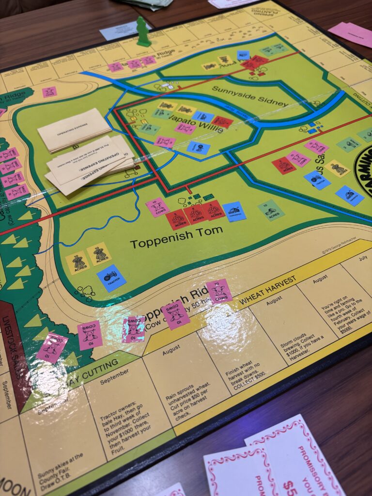 This wasn’t a horrible gift idea since Grandpa did enjoy games, but he generally would choose to play the national game of Australia, 500. The aunts and uncles would sneak in a round of Trivial Pursuit or maybe even Taboo on a spicy night. but I don’t know if The Farming Game ever hit the table for its intended audience.
