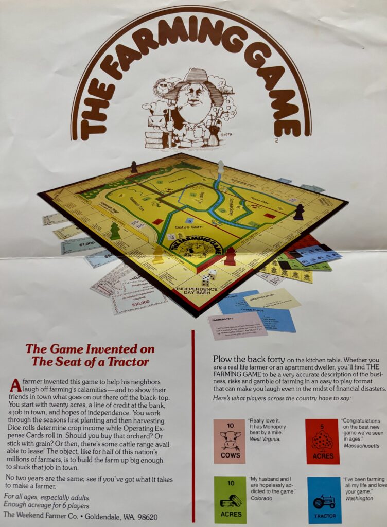 My grandpa Finazzo was a farmer in Minnesota, he had a farm and a tractor and the whole shebang. Like most farmers he supplemented his income in a variety of ways but his core identity was related to tending to his crops. I imagine sometime around 1979 someone saw the new board game The Farming Game at JC Penney and thought it would make an excellent birthday or Christmas gift.
